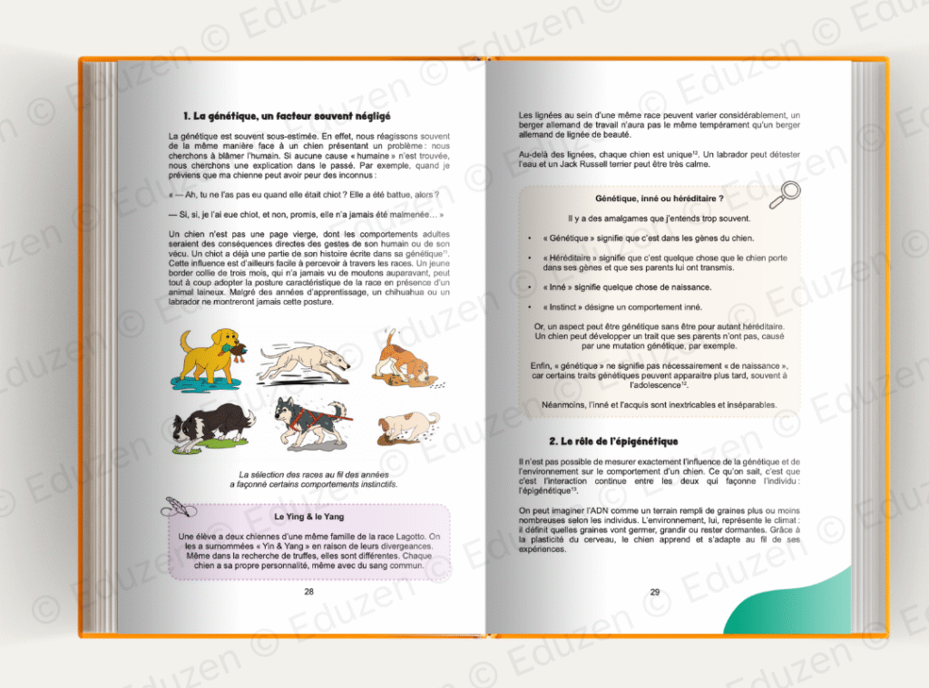- Enfin, ce livre regorge d’illustrations, pour encore une fois t’aider à te mettre à la place de ton chien ! Comprendre comment il se sent, et ce qu’il pense.